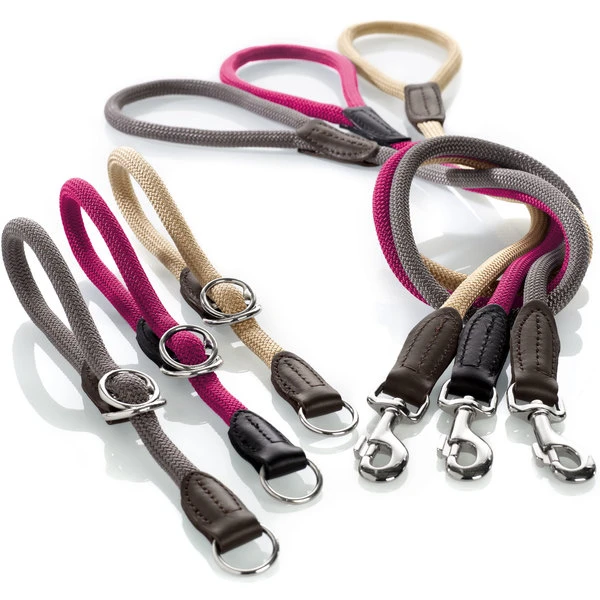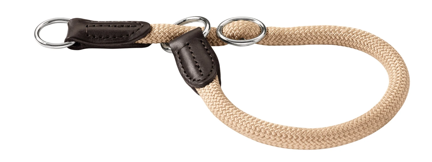 Eine Halsung wie die Dressurhalsung FREESTYLE ist die perfekte Halsbandform, wenn Sie Ihrem Hund das Halsband schnell anlegen und abnehmen wollen, oder wenn Sie die spezielle stufenlose Anpassungsmöglichkeit der Halsung einem herkömmlichen Halsband vorziehen. Die Dressurhalsung FREESTYLE besteht aus einem Tau aus Polyamid. Dieses Material macht es möglich, dass das Tau außen weich und anschmiegsam ist, innen aber einen belastbaren und sehr strapazierfähigen Kern hat. Die Dressurhalsung FREESTYLE ist dadurch auch witterungsbeständig und pflegeleicht, also ideal für den täglichen Einsatz. Ein besonders stabiler Stoppring sorgt dafür, dass die stufenlos verstellbare Halsung sich nur so weit zuzieht wie vorgesehen. So können Sie sicher sein, dass die Dressurhalsung FREESTYLE nie enger ist, als Sie das möchten.