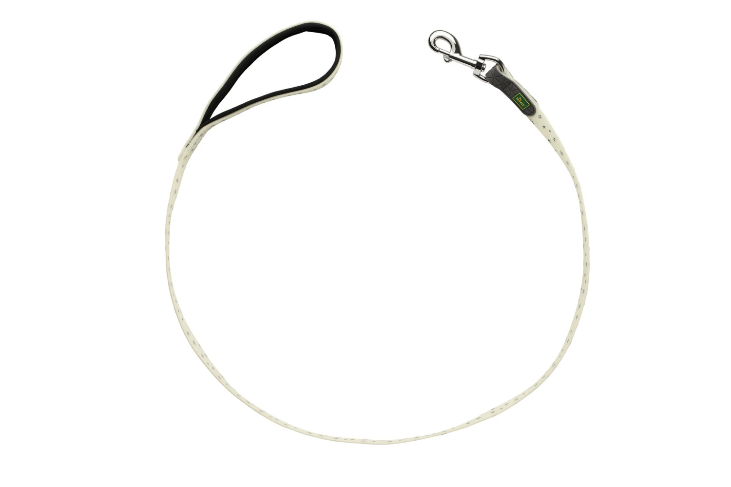 Die Führleine CONVENIENCE REFLECT GLOW ist für den Einsatz bei sportlichen Aktivitäten und in der Freizeit ideal geeignet. Bei Dämmerung und Dunkelheit offenbart sie ihr volles Potenzial, denn das innovative Material fluoresziert für einen waschechten Glow-in-the-Dark-Effekt. Und damit nicht genug! Werden Hund und Halter von einer Lichtquelle wie z.B. von PKW-Scheinwerfern oder der Kopflampe eines anderen Hund-Mensch-Teams angestrahlt, so reflektiert der Aufdruck der Leine und sorgt für optimale Sichtbarkeit auch in der Dämmerung oder bei witterungsbedingt schwierigen Sichtverhältnissen. Das zur Herstellung der Führleine verwendete Material zeichnet sich durch Robustheit und Leichtigkeit aus und ist reiß- und wasserfest zugleich. Sollte der Hund einmal unerwartet zum Sprung ansetzen weil ein Wildtier seine Aufmerksamkeit erregt hat, muss »das andere Ende der Leine« sich keine Sorgen machen, denn CONVENIENCE REFLECT GLOW ist wetterunabhängig griffig und dank der neoprengepolsterten Handschlaufe auch besonders hautschonend weich. Ein Topseller für anspruchsvolle Hundehalter, die auf Sicherheit dank Sichtbarkeit großen Wert legen und am liebsten mit »leichtem Gepäck« Gassi gehen.