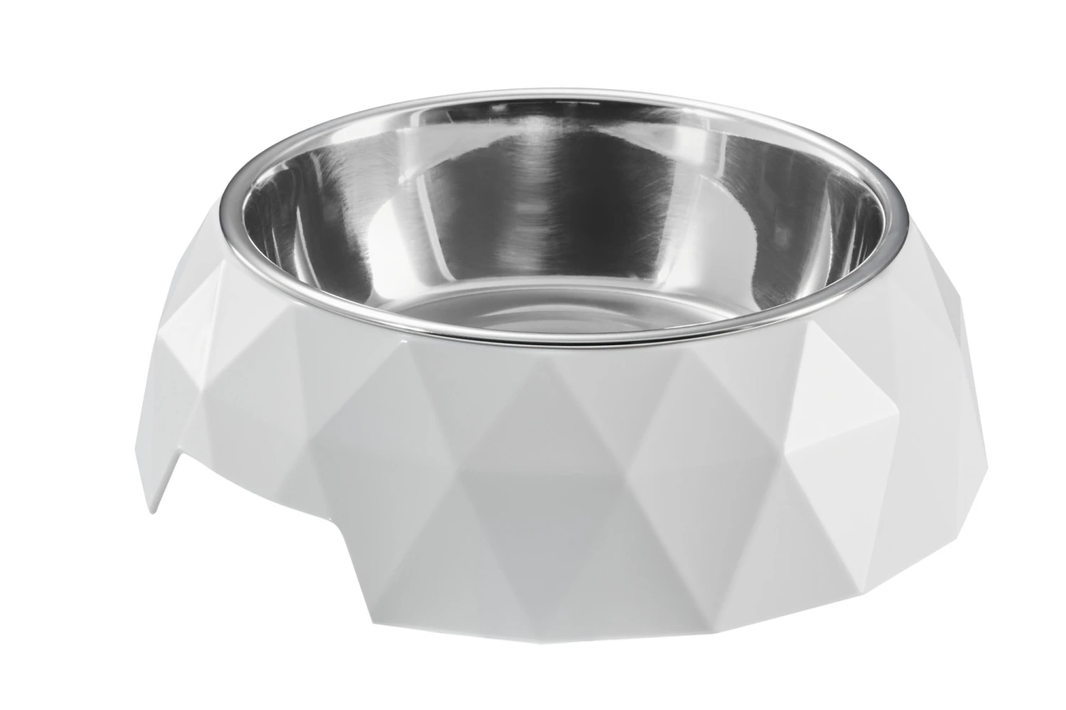 Ein extravaganter Hingucker ist der Melamin-Napf KIMBERLY. Mit seinem zeitlosem Facettendesign wirkt der Napf edel und anmutig. Der Napf aus Melamin ist kratz- und stossfest sowie besonders pflegeleicht. Sehr praktisch ist der herausnehmbare Innennapf aus Edelstahl. Gummiaufsätze am Napfboden sorgen für einen sicheren Stand und verhindern ein Verrutschen des Napfes bei übermütigem Fress- oder Trinkverhalten. Zur Reinigung einfach auswischen oder mit Wasser und einem weichen Tuch oder Schwamm abwaschen.