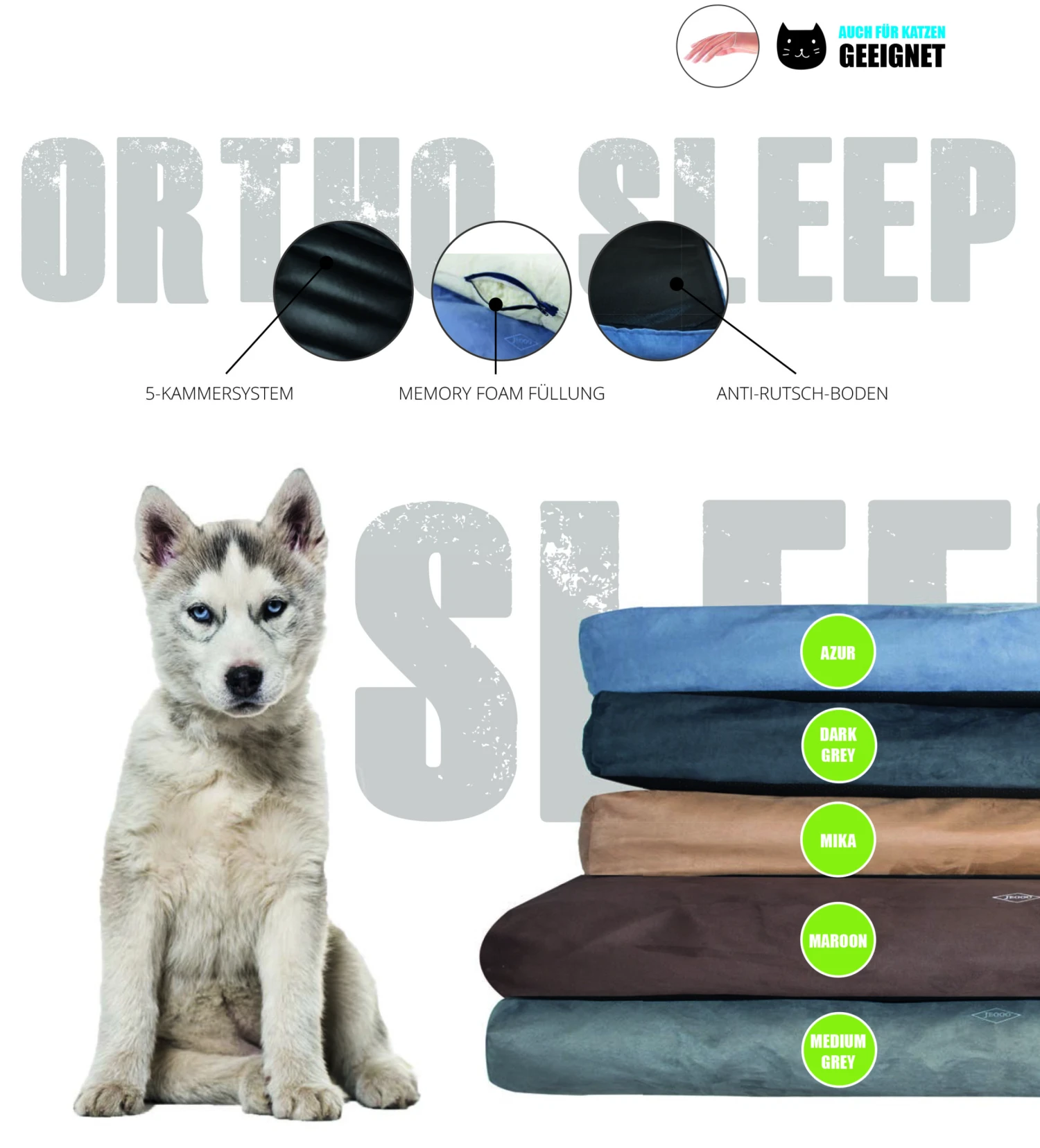angenehmen und weichen Liegekomfort. Ein 5-Kammersystem bietet die Möglichkeit die Einzelteile unabhängig voneinander zu öffnen und die Füllung individuell an den Komfort Ihres Vierbeiners anzupassen. Durch einen Reißverschluss an der Unterseite besteht die Möglichkeit die Memory Foam Füllung individuell an den Komfort Ihres Vierbeiners anzupassen.