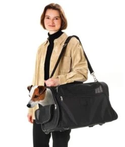 Trage- und Schultertasche für Hunde und Katzen. Modisches Design. Mit Halsband-Arretierung. Viele Seitentaschen (z.B. für Handy, Schlüssel, Impfpass, Geld etc.). Mit Lüftungsnetz. Spezieller „Comfo-Tragegriff“ (am Boden), unterstützt eine optimale Gewichtsverteilung. Schulter und Gelenke werden wohltuend entlastet. Pflegeleicht.