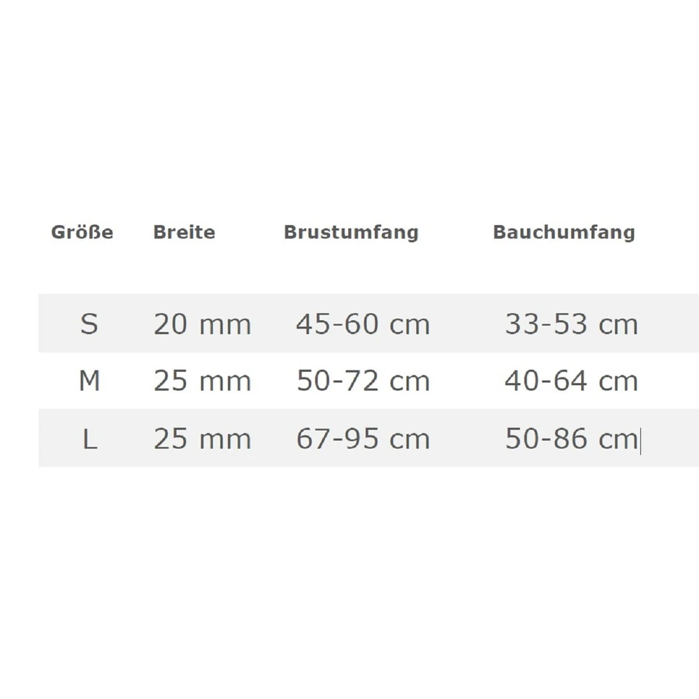 | Größe | 20mm x 38-49cm, 20mm x 45-60cm, 25mm x 50-72cm, 25mm x 67-95cm |