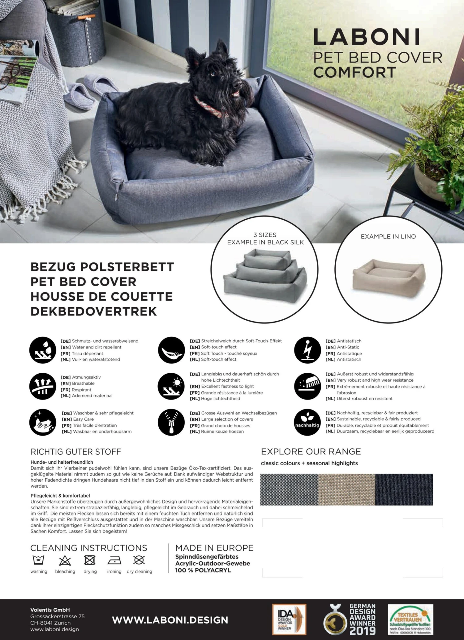 Das Polsterbett SMOOTH von LABONI überzeugt Hund und Halter gleichermaßen bei Design, Funktionalität und Qualität. Gesunden Schlafkomfort stellen die hochwertige ECO COMFORT Matratze und die hautfreundlichen und extrem robusten Bezugsstoffe sicher, die für höchste Pflegeleichtigkeit schmutz- und wasserabweisend imprägniert sind. Kratzresistent und 100 % lichtecht, behält der hochwertige Outdoor-Stoff des Hundebetts auch nach Jahren im Gebrauch sein Aussehen, sodass Sie lange Freude an diesem exklusiven Marken-Produkt von LABONI haben werden.