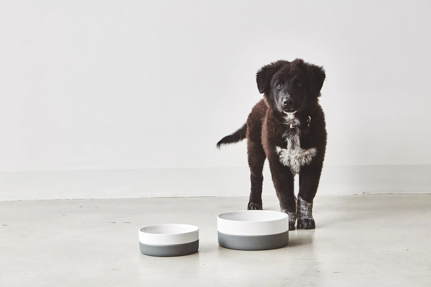 Damit der Napf auf dem Boden einen festen Stand hat, hat sich das dänische Designteam ein ganz besonderes Detail ausgedacht: Ein abnehmbarer Silikonmantel umfasst den Napf, schützt den Boden und bringt Farbe in das ansonsten schlicht gehaltene Design.