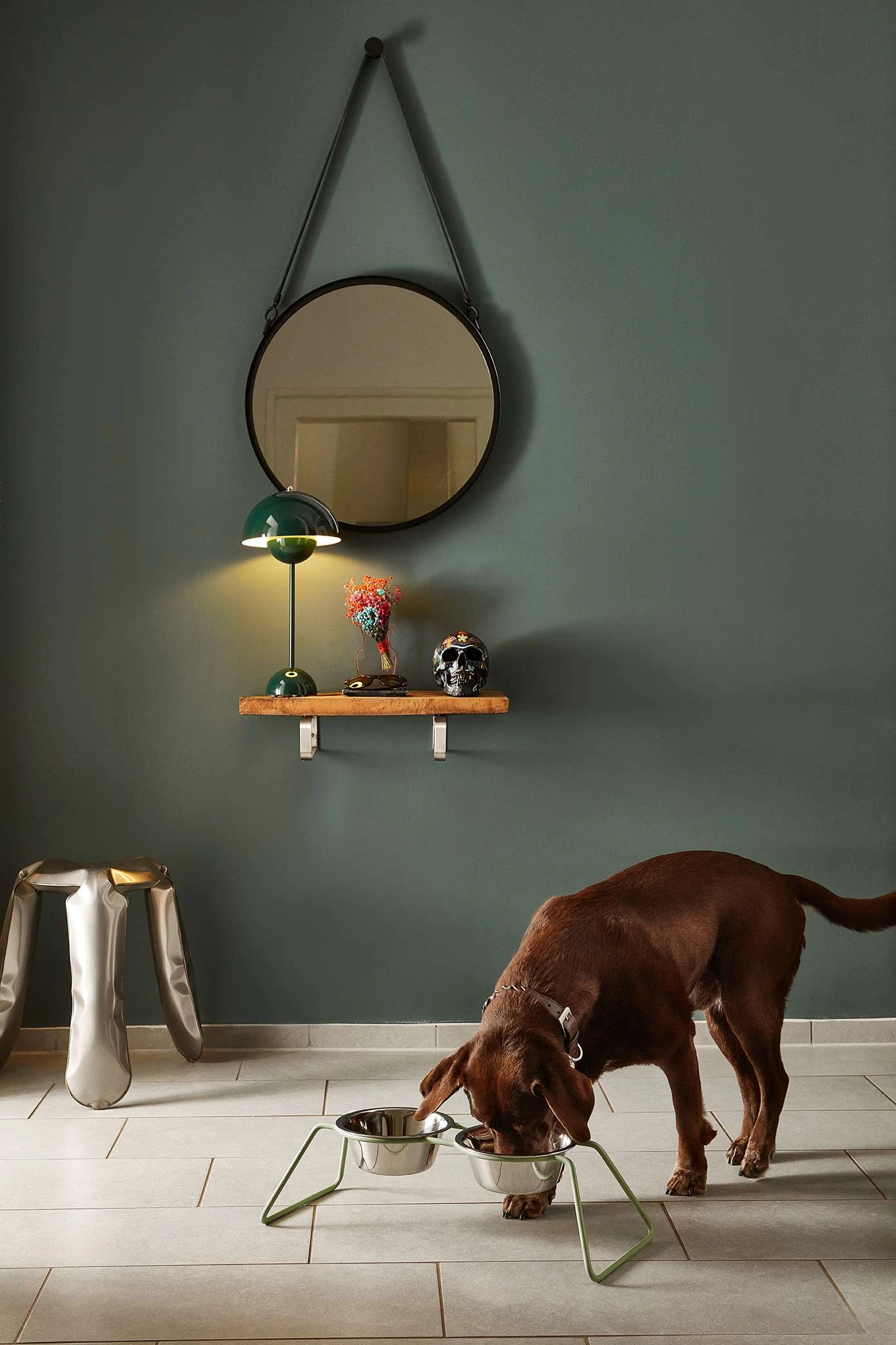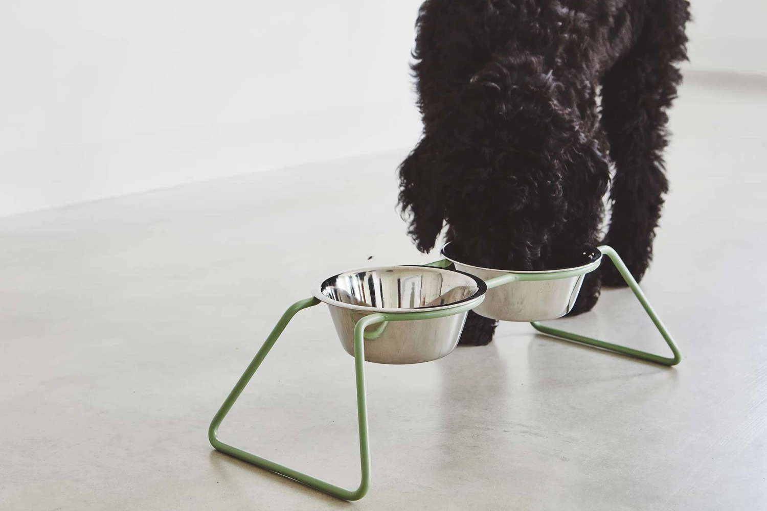 Mit dem minimalistischen Napfständer Cena beweist der Designer Filip Gordon Frank, dass weniger manchmal mehr ist. Der pulverbeschichtete Metallrahmen in drei frischen Farben verleiht Cena eine durchgängige Kontur und optische Leichtigkeit. Fast schwerelos werden die zwei Edelstahlnäpfe von der Konstruktion getragen und laden Ihren Hund zum genüsslichen Schlemmen ein.