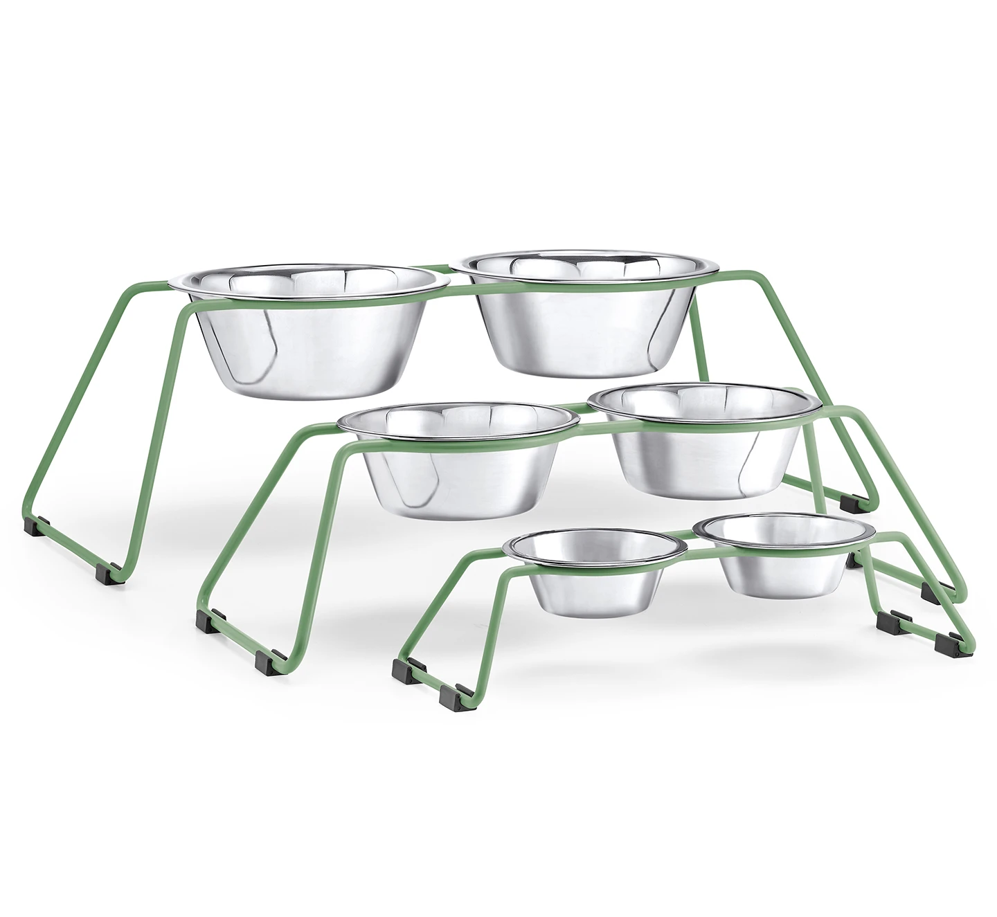 Für maximale Hygiene sind die Schüsseln spülmaschinenfest und können separat nachgekauft werden. Im Lieferumfang sind jeweils vier separat beiliegende Kunststofffüße enthalten, die bei Bedarf angebracht werden.