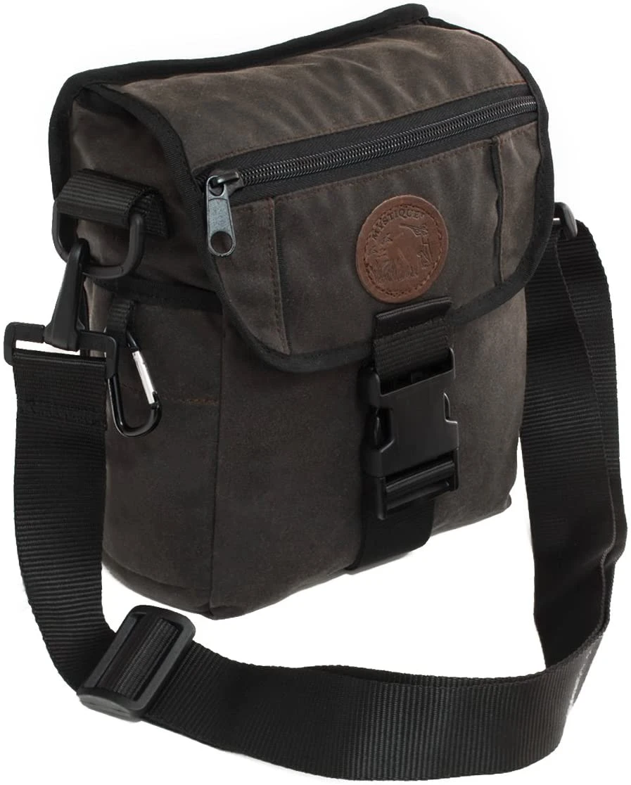 Die Mystique® „Mini Dummytasche Deluxe gewachst“ ist eine praktische Trainingstasche für das Training mit 2-3 Dummys. Nicht für jedes Training braucht man gleich so viele Dummys und will daher möglicherweise auch nicht immer die große Dummytasche mit sich herumschleppen. Genau für diesen Fall hat Mystique® die Mini Dummytasche entwickelt, in welche 2-3 Dummys sehr bequem hinein passen und noch ein bisschen Platz für anderes Trainingszubehör bleibt. Der Schultergurt ist verstellbar und abnehmbar. Diese Tasche kann auch am Hosengürtel befestigt werden. Durch das spezielle Innenmaterial, welches unempfindlich gegenüber Dreck und Feuchtigkeit ist, kann man ohne Probleme auch nasse, schmutzige Dummys und Wild in der Tasche transportieren. Danach einfach mit einem feuchtem Tuch abwischen.