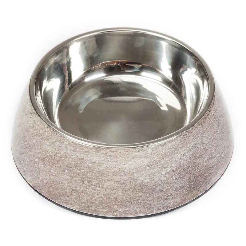 Melaminnapf in stylischer Schieferoptik mit herausnehmbaren Edelstahlnapf.