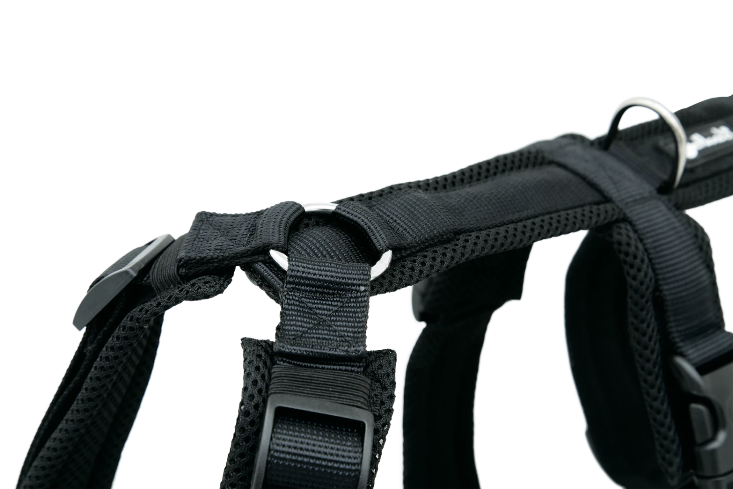 - durchgehend gepolstert mit weichem Mesh Material, auch unter Schnallen und Ringen