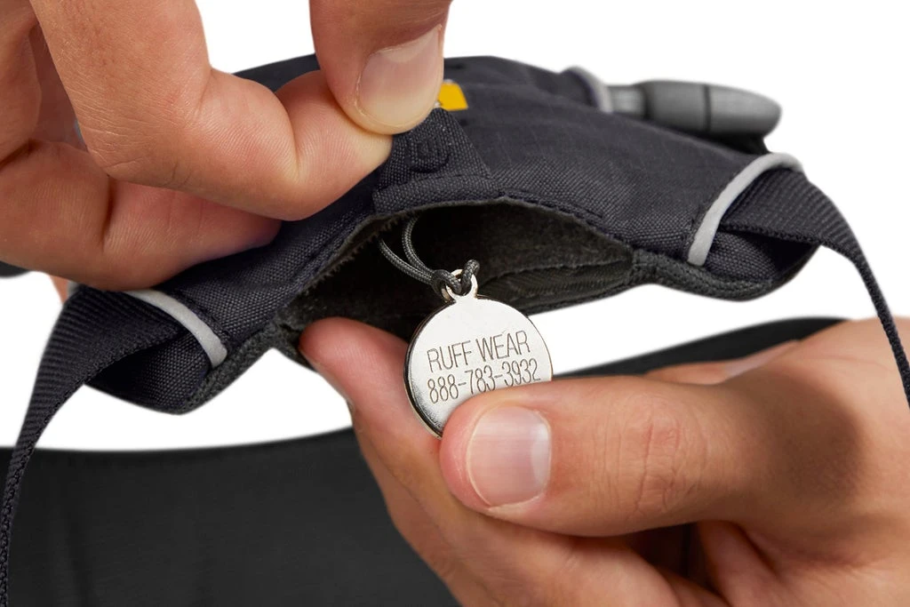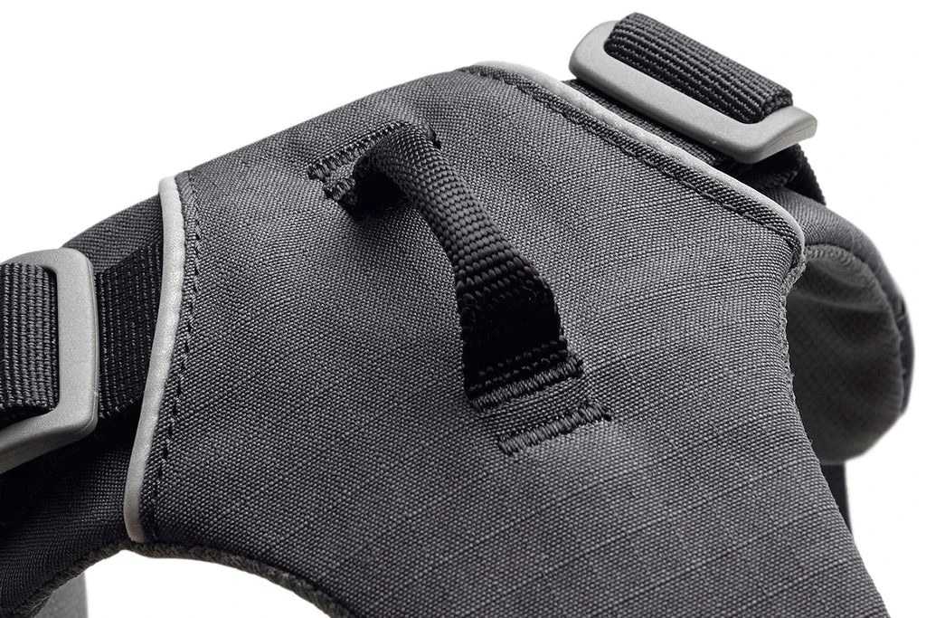Das Geschirr hat zwei Befestigungspunkte für die Leine: einen V-Ring auf dem Rücken des Hundes als Hauptbefestigungspunkt für die Leine und eine verstärkte Gewebeschlaufe an der Brust für zusätzliche Kontrolle bei zweifachem Leinenanschluss. Dies kann zum Beispiel für Hunde genutzt werden, die sehr stark ziehen oder bei denen durch hohe Reaktivität größere Kontrolle nötig ist. Das ID Fach hält die Hundemarken und verhindert Klimpern, bietet aber trotzdem einfachen Zugriff, sollte sie benötigt werden. Reflektorstreifen und eine Befestigungsschlaufe für das Sicherheitslicht The Beacon sorgen für gute Sichtbarkeit bei schlechten Lichtverhältnissen.